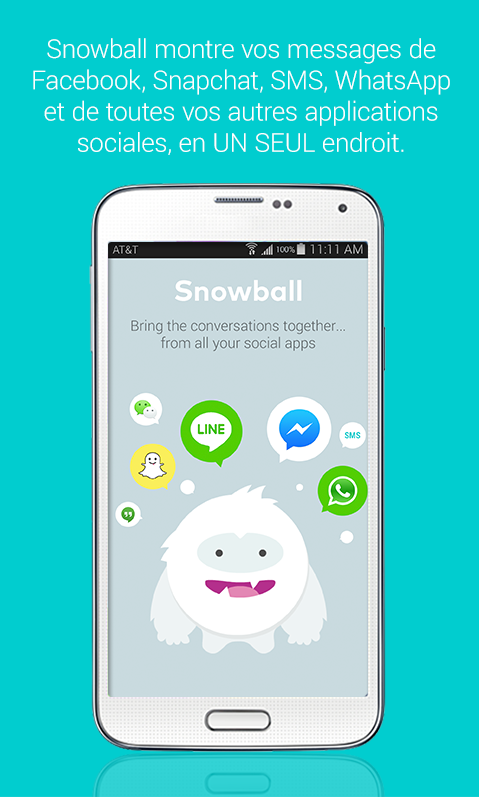 تطبيق Snowball من أجمل تطبيقات الأندريد حيث يمكنك من مشاهدة كل رسائل الفايسبوك وتويتر والوات ساب والويشات وشبكات أخرى في قائمة واحدة حيث يمكنك مشاهدتها دفعة واحدة دون الحاجة إلى التبديل بين التطبيقات.